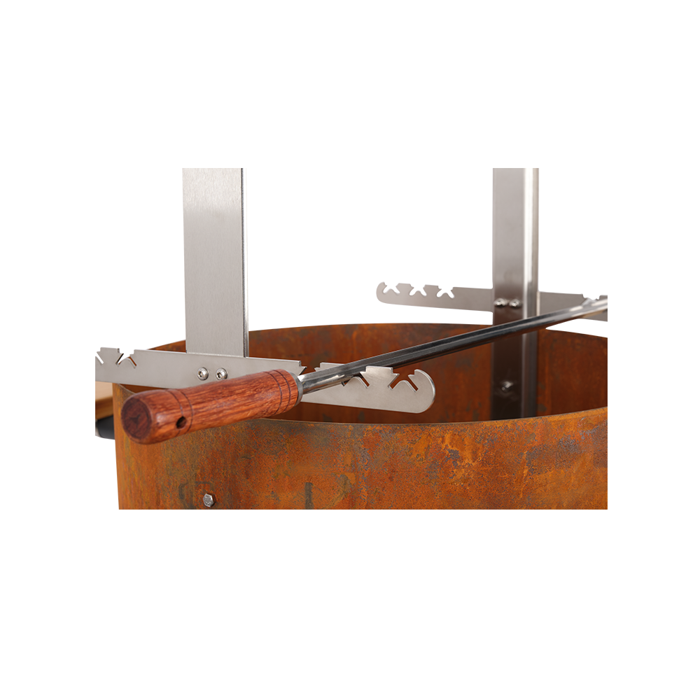 Der Bandit FirePlace vereint Grill und Feuerstelle perfekt. Mit dem Asado Grill holst du dir südamerikanisches Flair in deinen Garten. Der Asado Grill wird fest am Bandit FirePlace verschraubt und sitzt sicher und Fest am Body des Bandits.