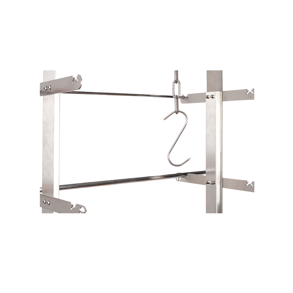 Das Tomahawk oder andere leckere Fleischstücke werden an Kette und Haken aufgehängt.