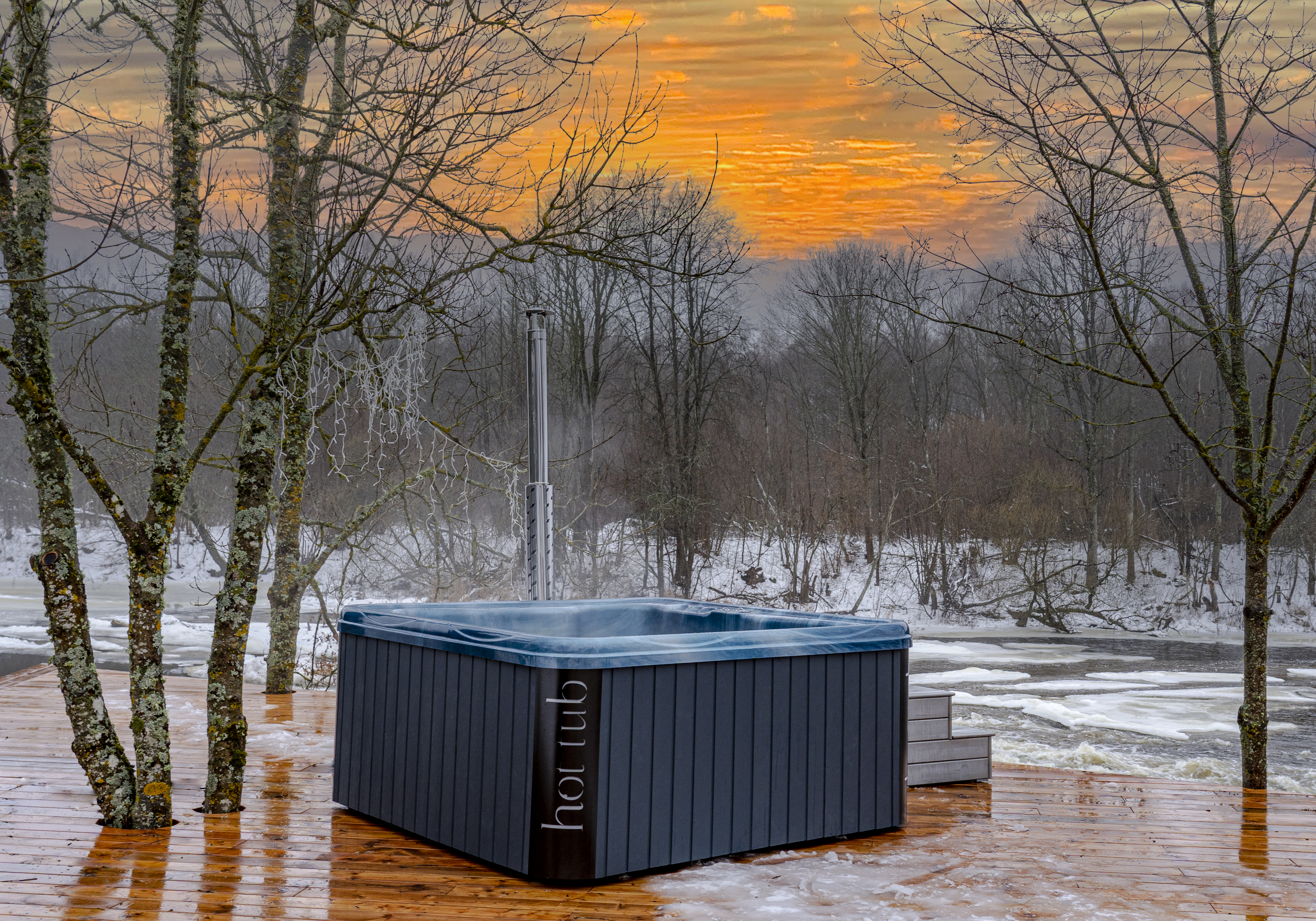 Badezuber Acryl Rechteckig 2,2m x 2,2m Außenofen
