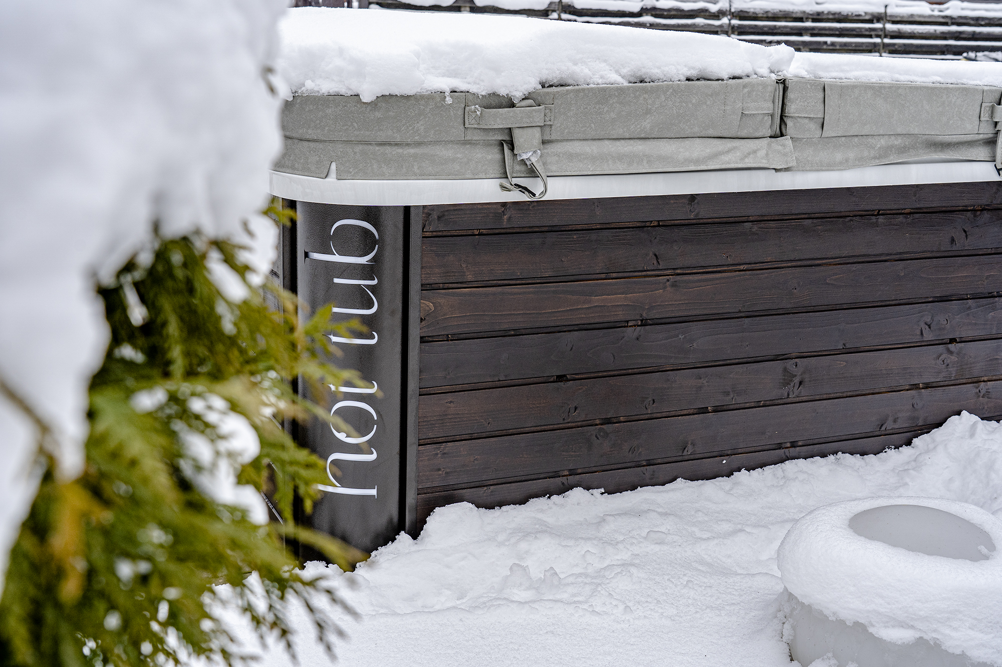 Der Badezuber hat ein Maß von 2,45m x 2,45m und bietet Platz für bis zu 6 Personen.