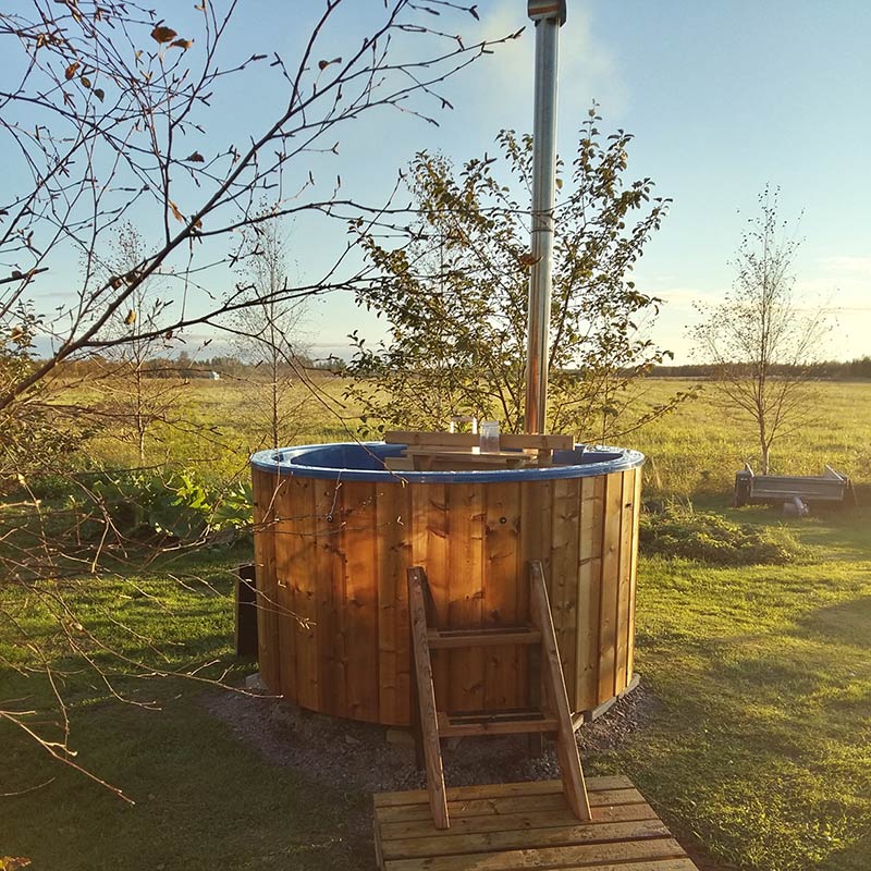 Der Zuber ist mit einem Innenofen ausgestattet und kann Dank des kleinem Volumens sehr schnell aufgeheizt werden, mit ein wenig Holz ist Ihr Zuber in einer geringen Zeit mollig warm. Der Innenofen ist durch eine Holztrennwand zum Schutz vor dem Ofen ausgestattet. Die Betriebskosten sind durch dieses ausgereifte System äußerst gering!
