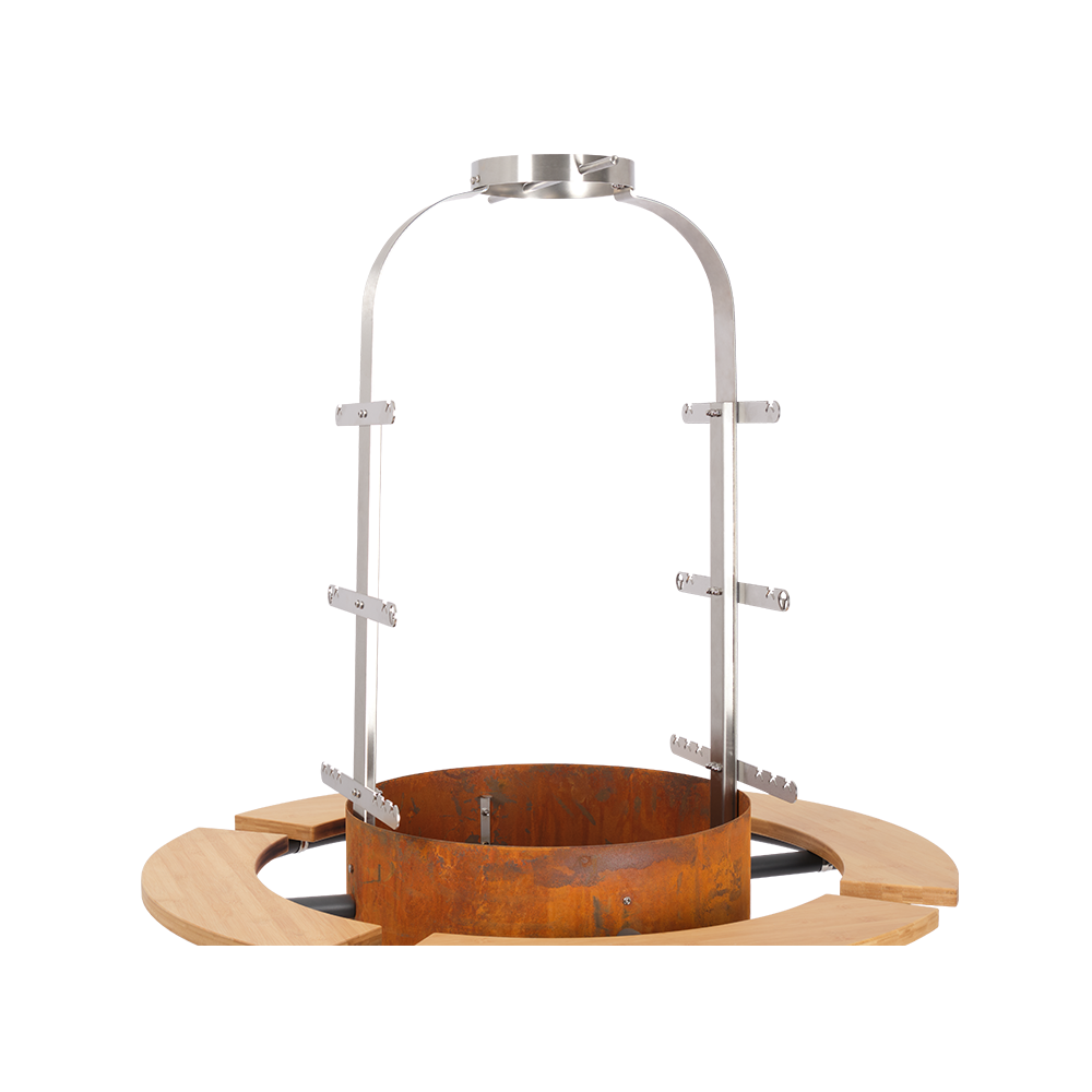 Die umlaufende Reling bietet Dir nicht nur Halt, sondern dient auch zum Befestigen der optionalen Bambusbretter, um Dir rundum Ablagefläche zu bieten.Grill & Kohlerost: