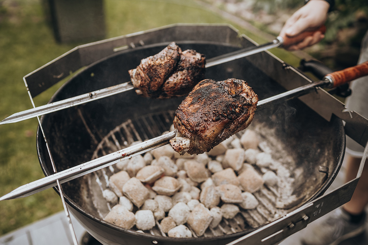 Das Ergebnis ist, dass das Grillgut auf den Spießen von allen Seiten gleichmäßig gegrillt wird.