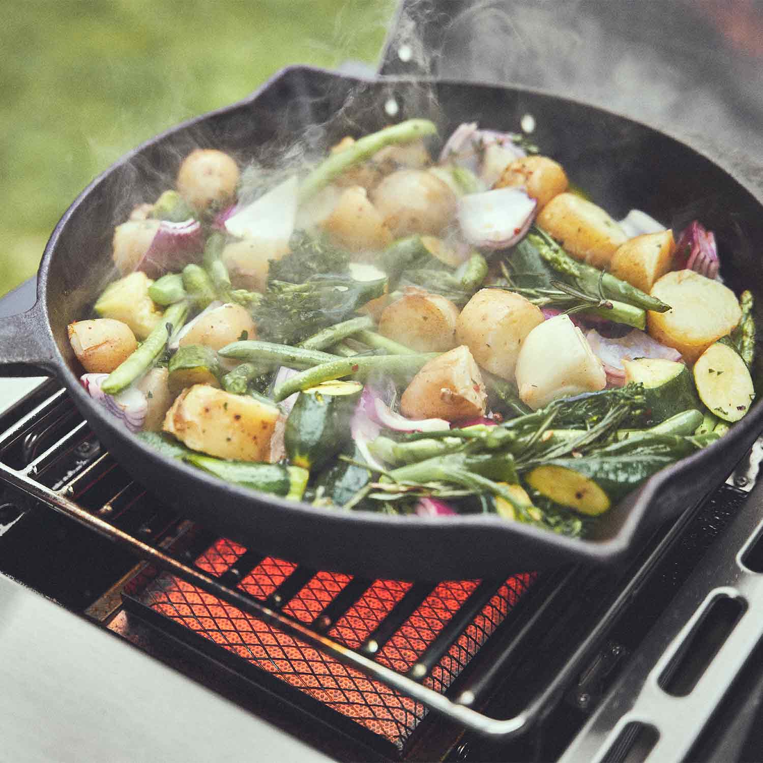 Massive Gusseisenroste sorgen auf einer Gesamtgrillfläche von 59,5 x 43 cm für
