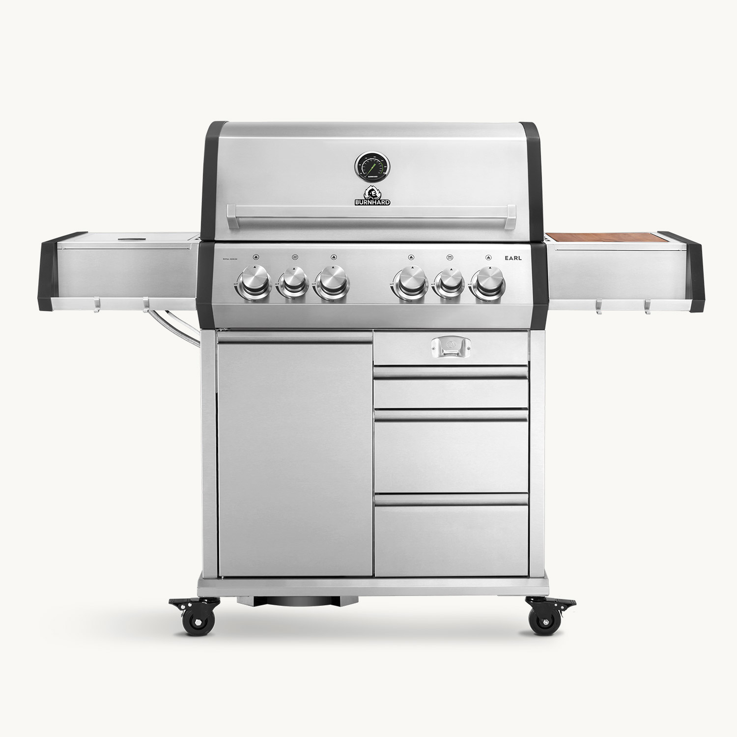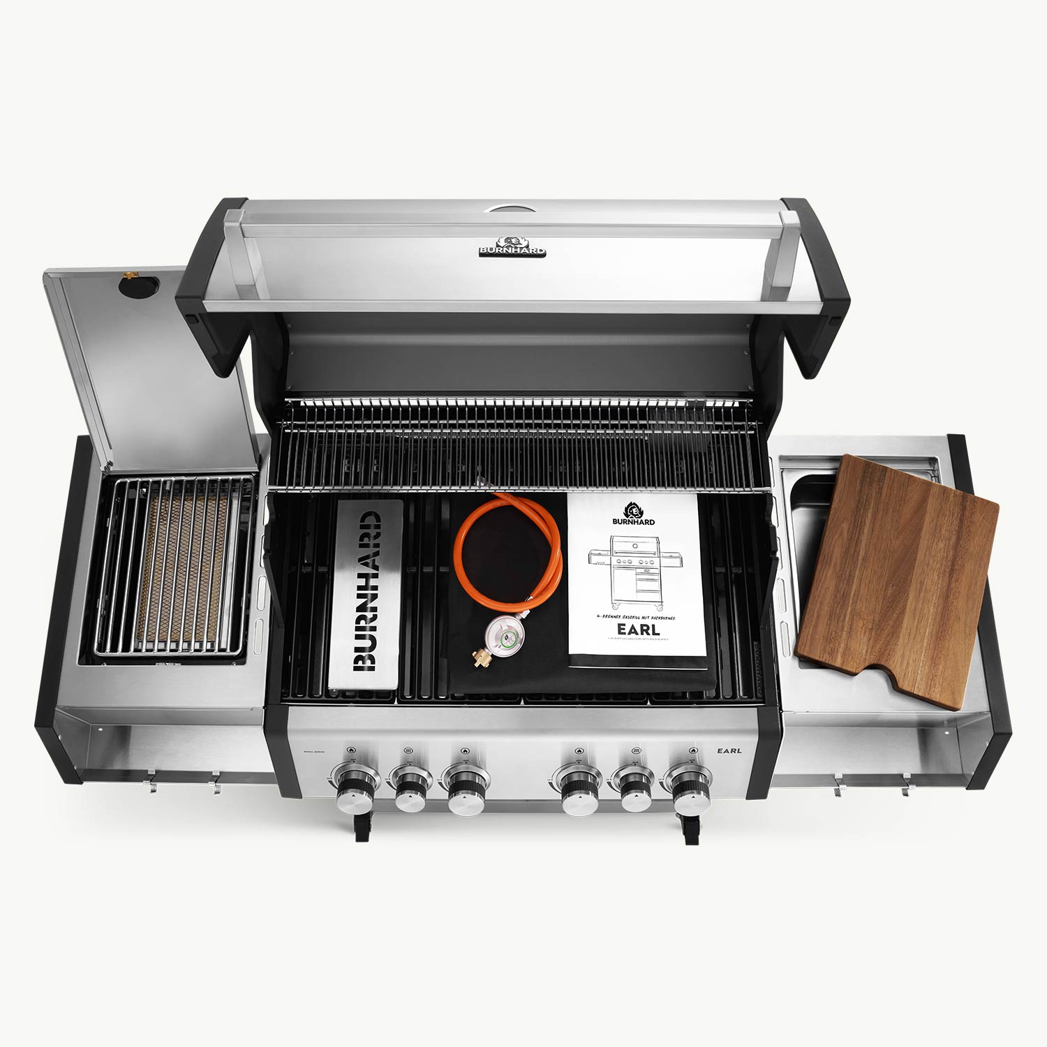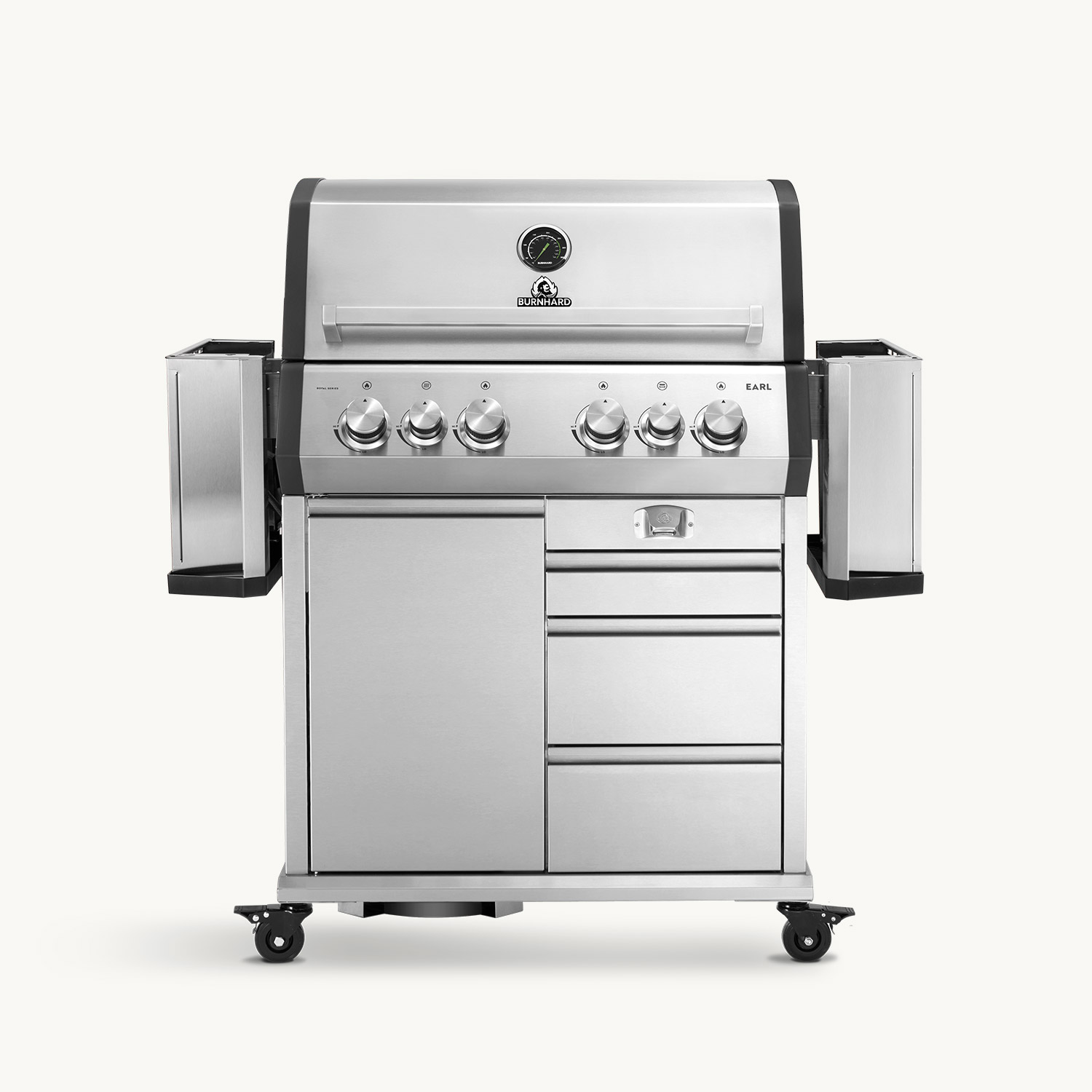 EARL, unser 4-Brenner Gasgrill mit Heckbrenner, kommt mit fettem Backburner und Infrarot-Keramikbrenner, um deinem nächsten Grillgelage die Krone aufzusetzen!