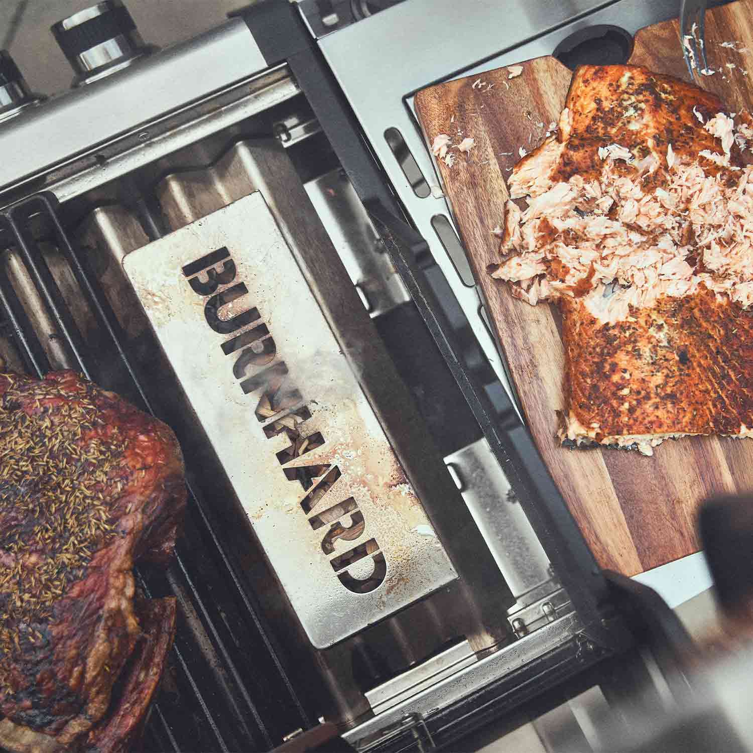 Bei geschlossenem Deckel nur mit dem Backburner langsam garen oder bei voller Power