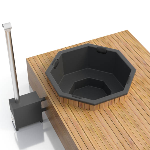 Ein enormer Vorteil ist das beheizen durch einen Außenofen, mit ein wenig Holz ist Ihr Zuber in einer geringen Zeit mollig warm. Die Betriebskosten sind durch dieses ausgereifte System äußerst gering!