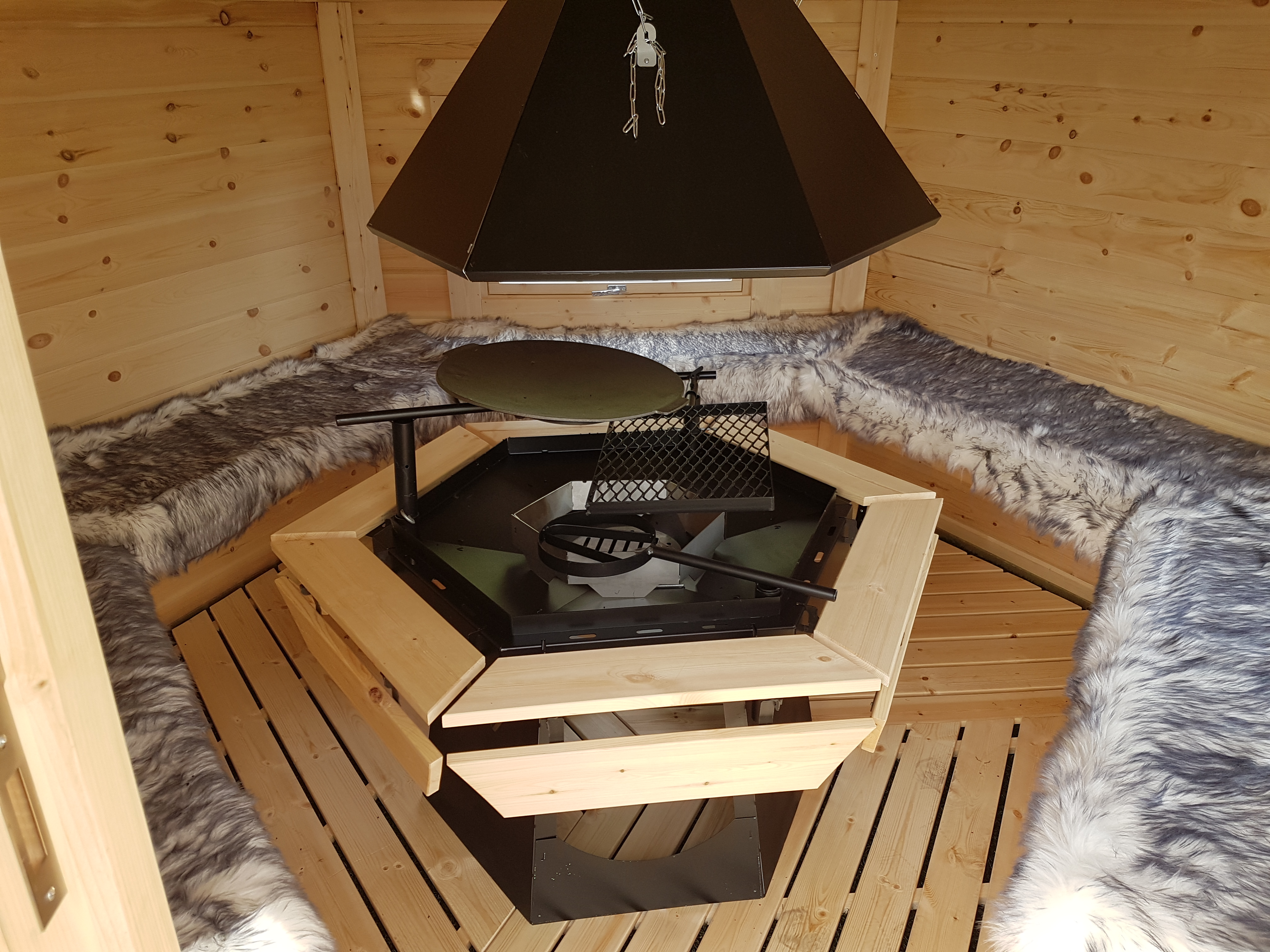 Die Grillhütte Freja 7m², hat 150 cm hohe Seitenwände, damit gehört Sie zu unseren höchsten Grillvariantenhütten. Im Vergleich zu der Grillkota Luna oder Alma, biete sie viel mehr Stehhöhe.