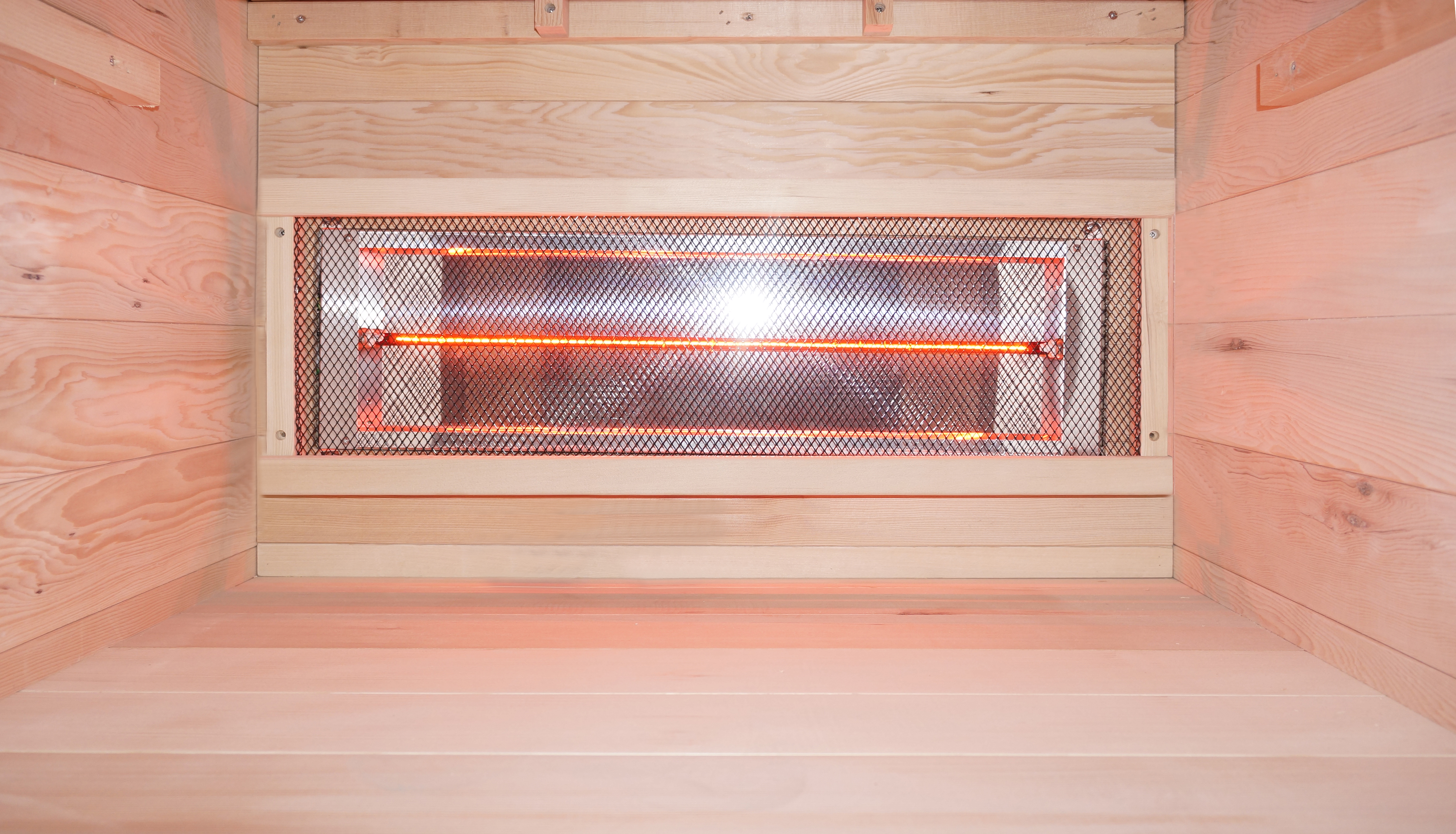 4 Rotlicht-Infrarotsaunaöfen: 1,65 kW / 230 V- 2 vordere Infrarotsaunaöfen ( 2x 400 W )
