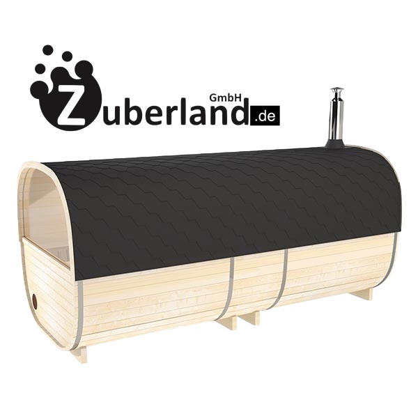 Die Fasssauna mit Vorraum ist ein 2-in-1-Modell, bei dem die Sitze und der Tisch leicht in eine ca. 2,1 x 1,8 m große Liegefläche umgewandelt werden können. Dies kann eine großartige Lösung für diejenigen sein, die viel Zeit mit Freunden und Familie in der Natur verbringen.