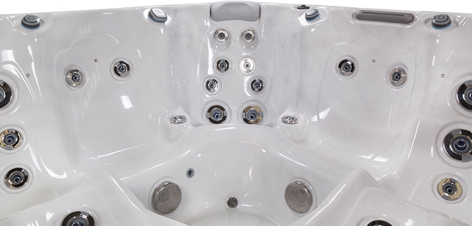 Der Whirlpool ist geräumig genug, um 42 Massagedüsen unterzubringen und bietet sogar für